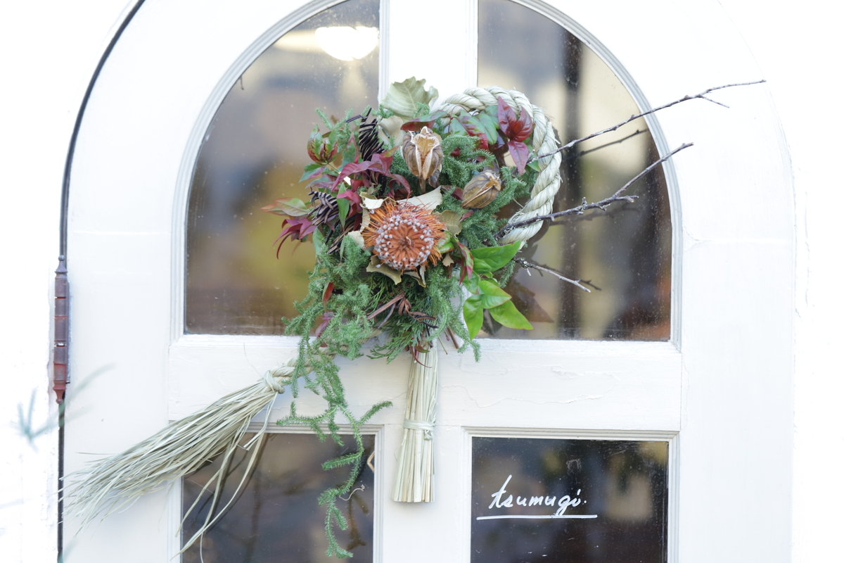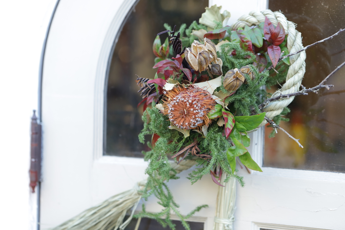 バンクシアを入れたインパクトのあるお飾りです