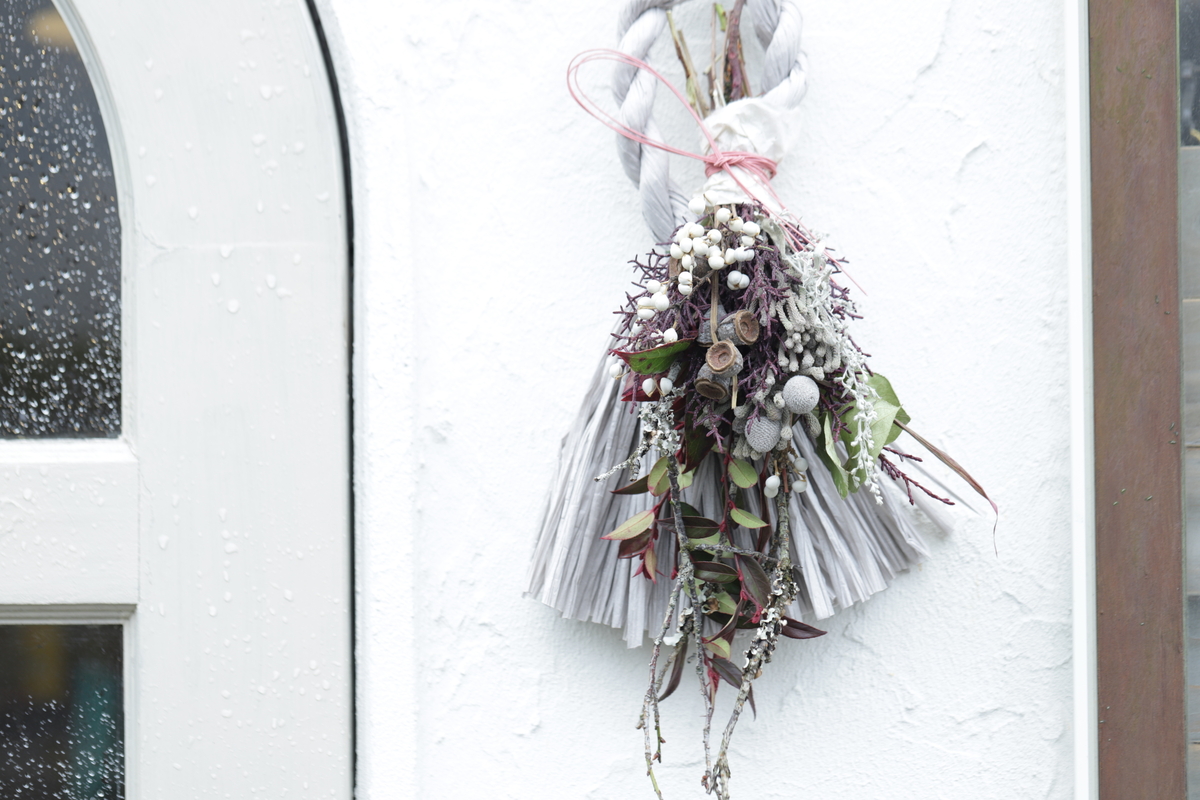 しめ縄はカラーのペーパーしめ縄です