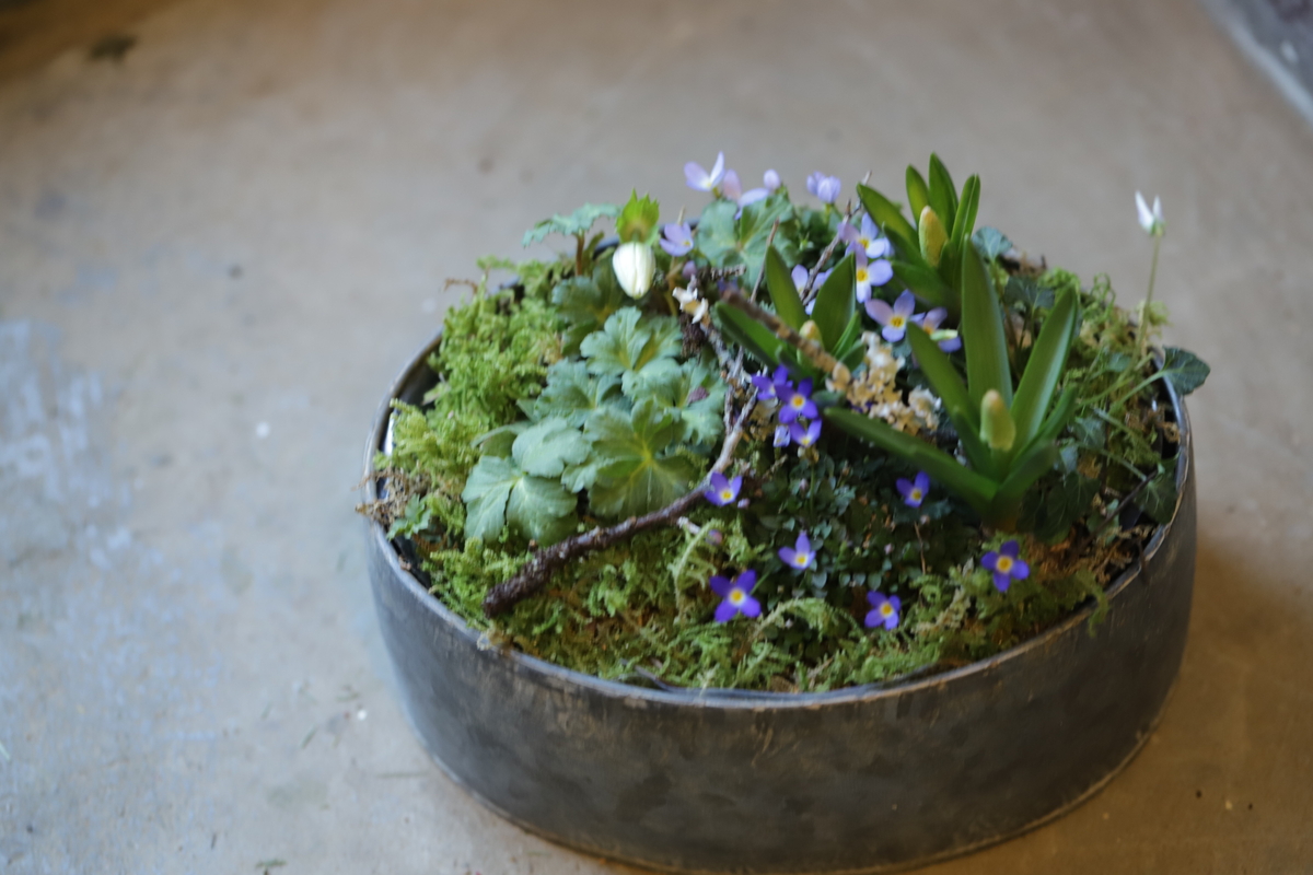 春の訪れを感じる寄せ植えです