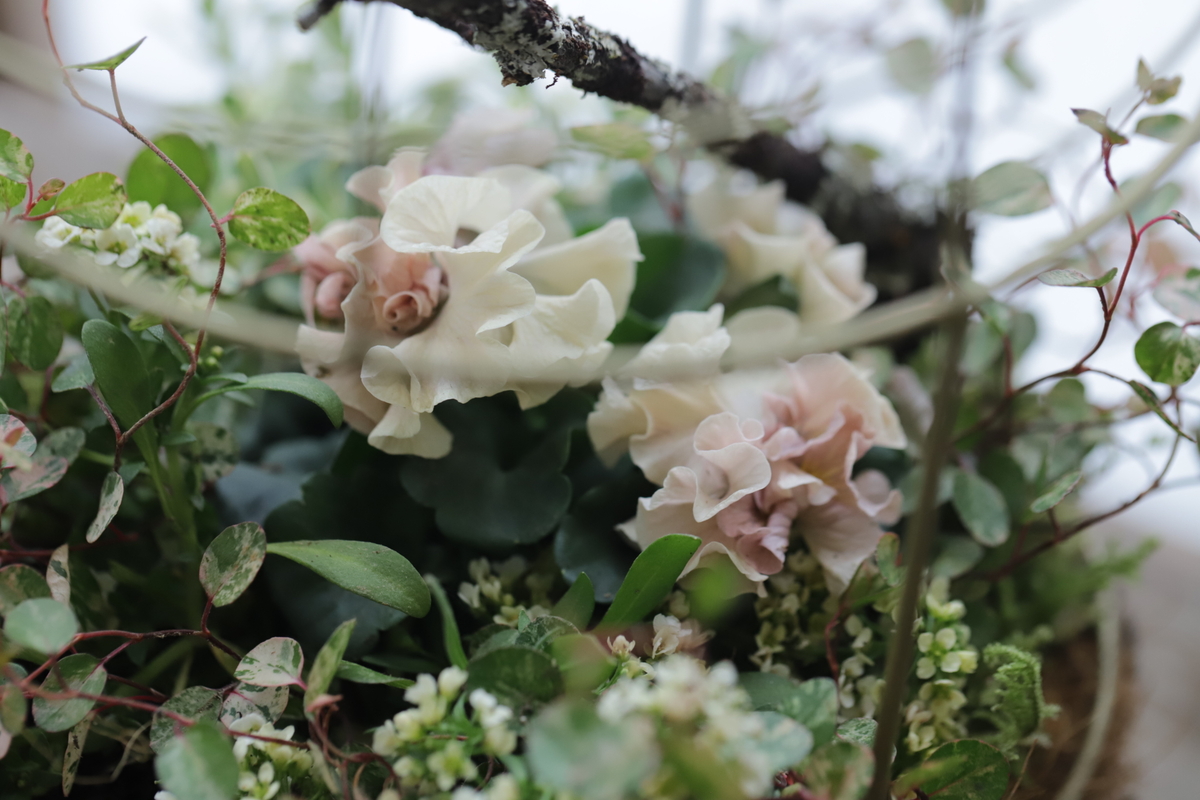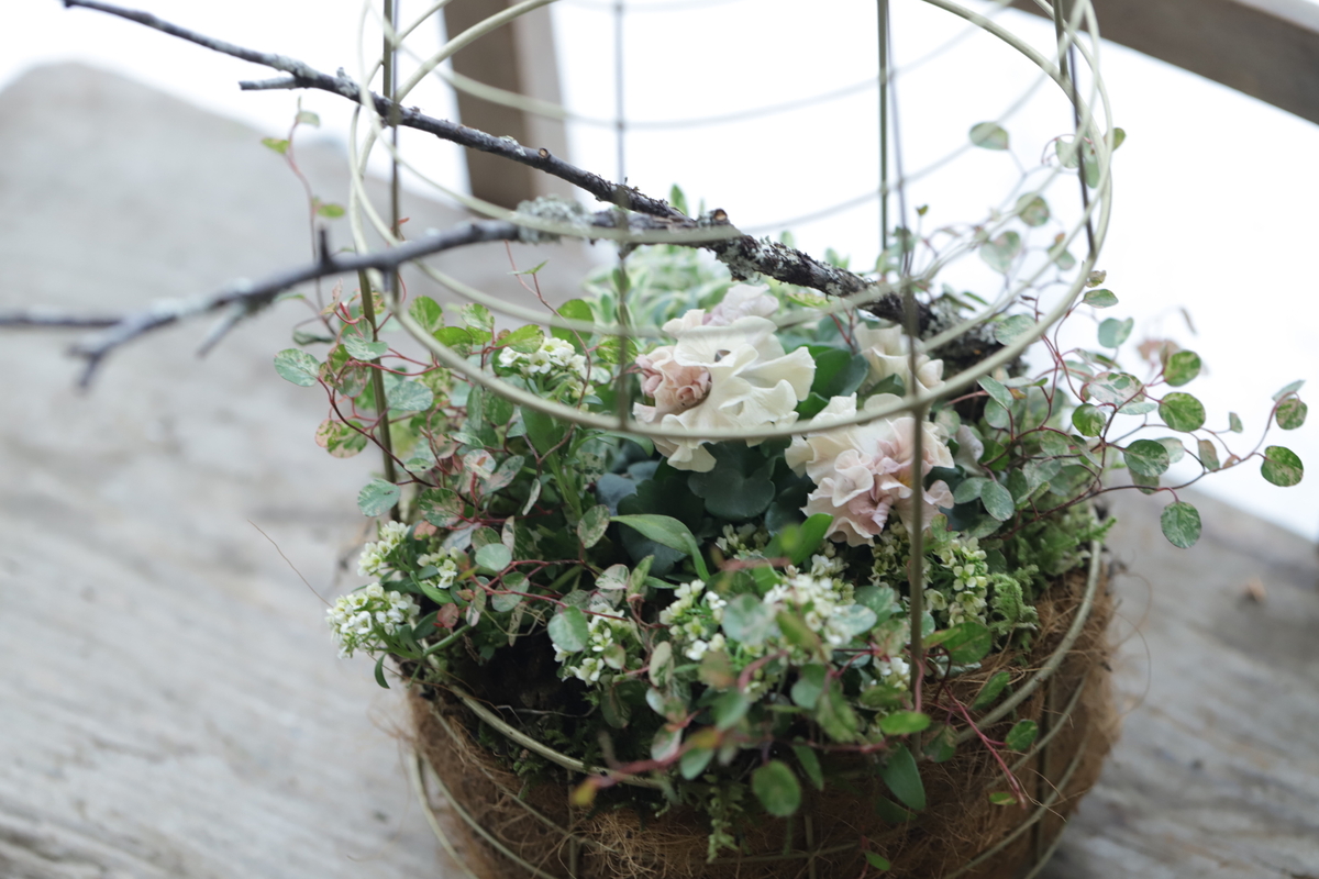 アリッサム、ワイヤープランツなどを合わせてつくりました