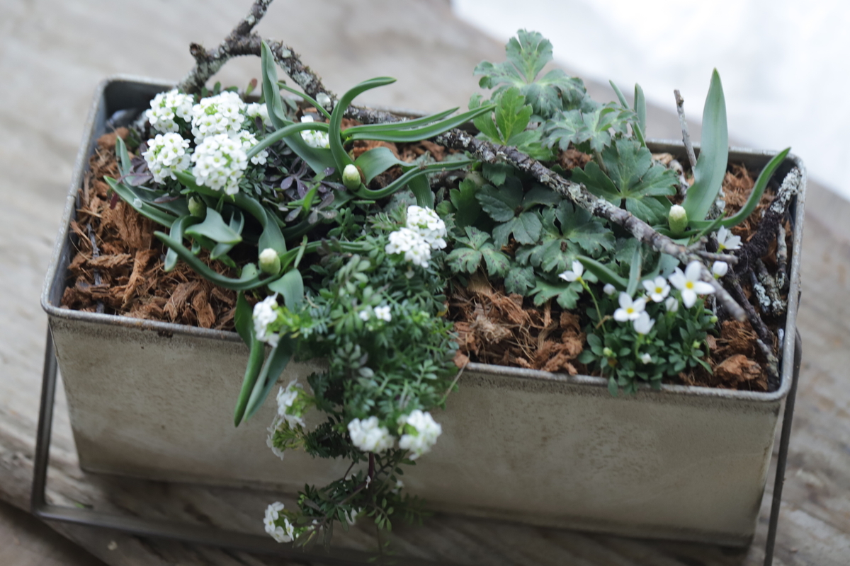 もりもりとした寄せ植えではありませんが素朴で素敵です