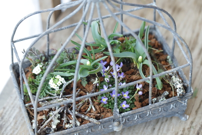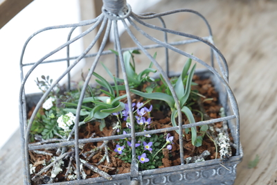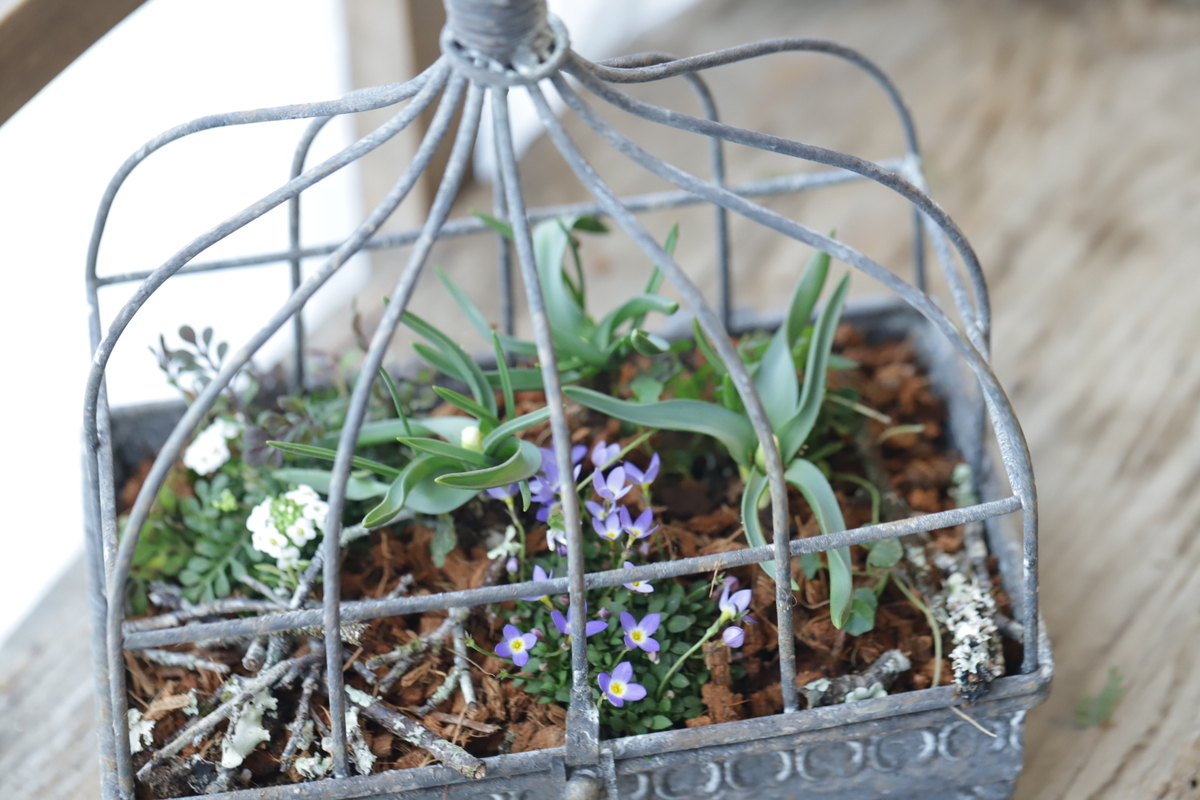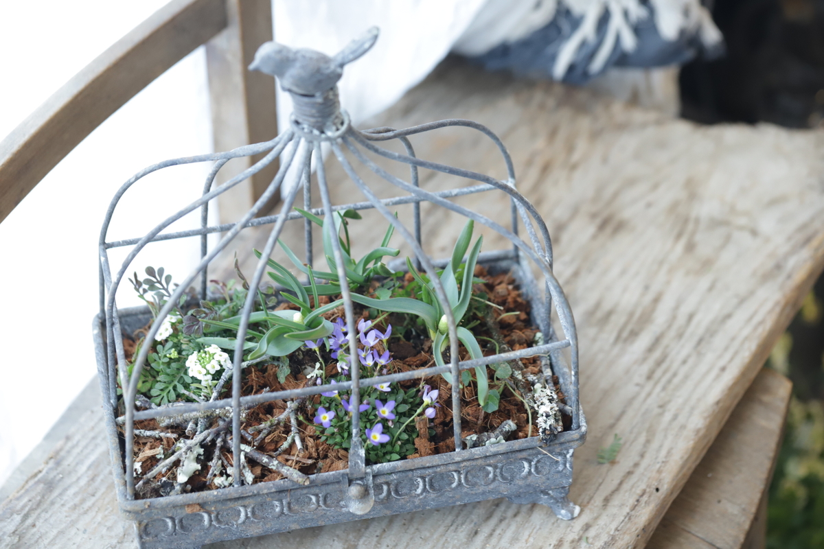 鉢の上に転がっている枝は森の中で小枝が落ちているイメージを