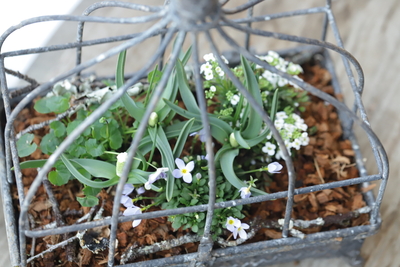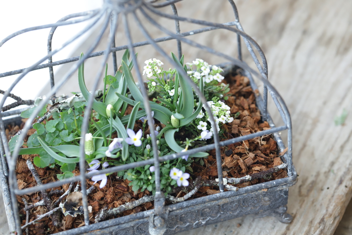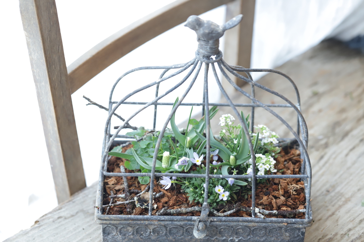 鉢の上に転がっている枝は森の中で小枝が落ちているイメージを
