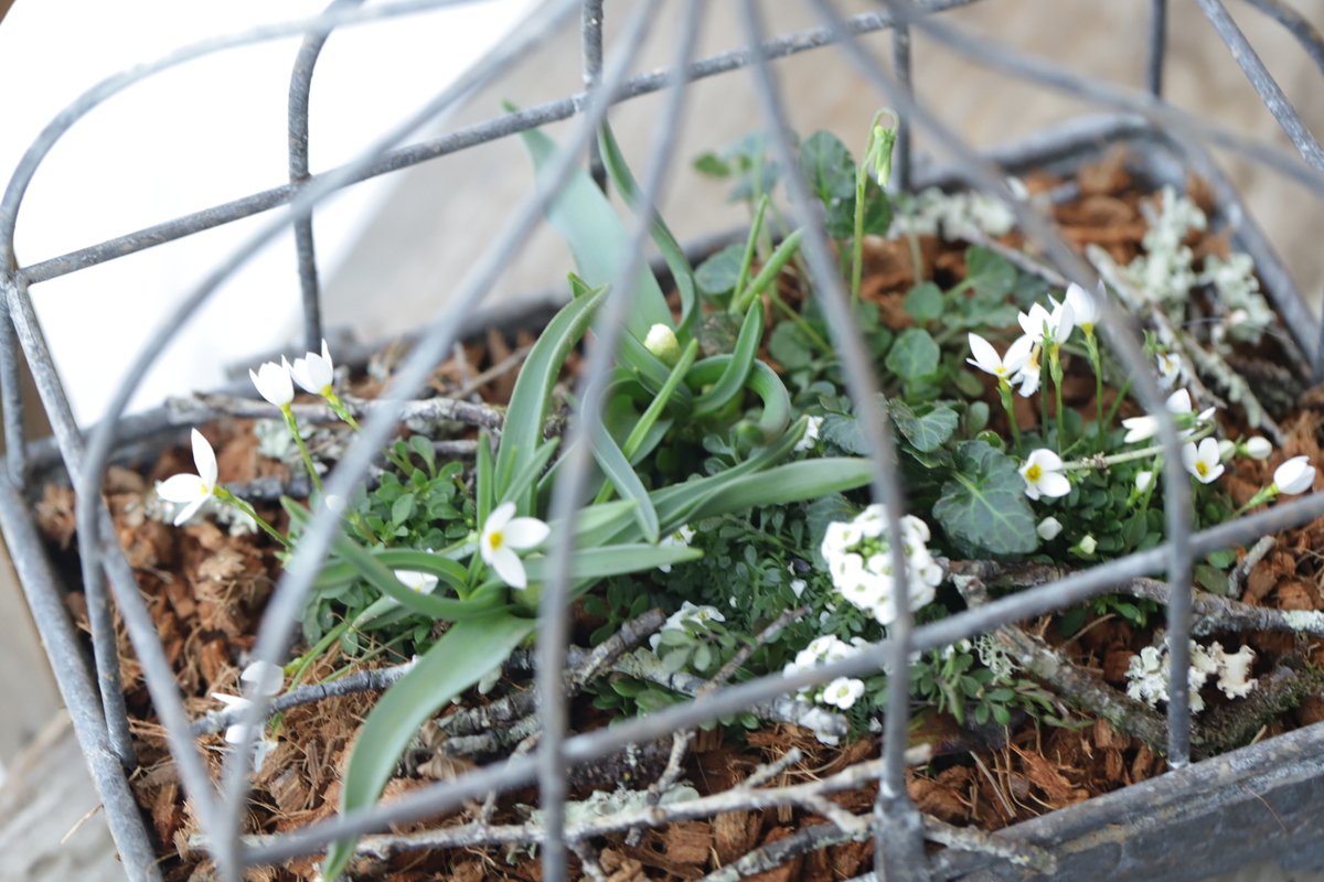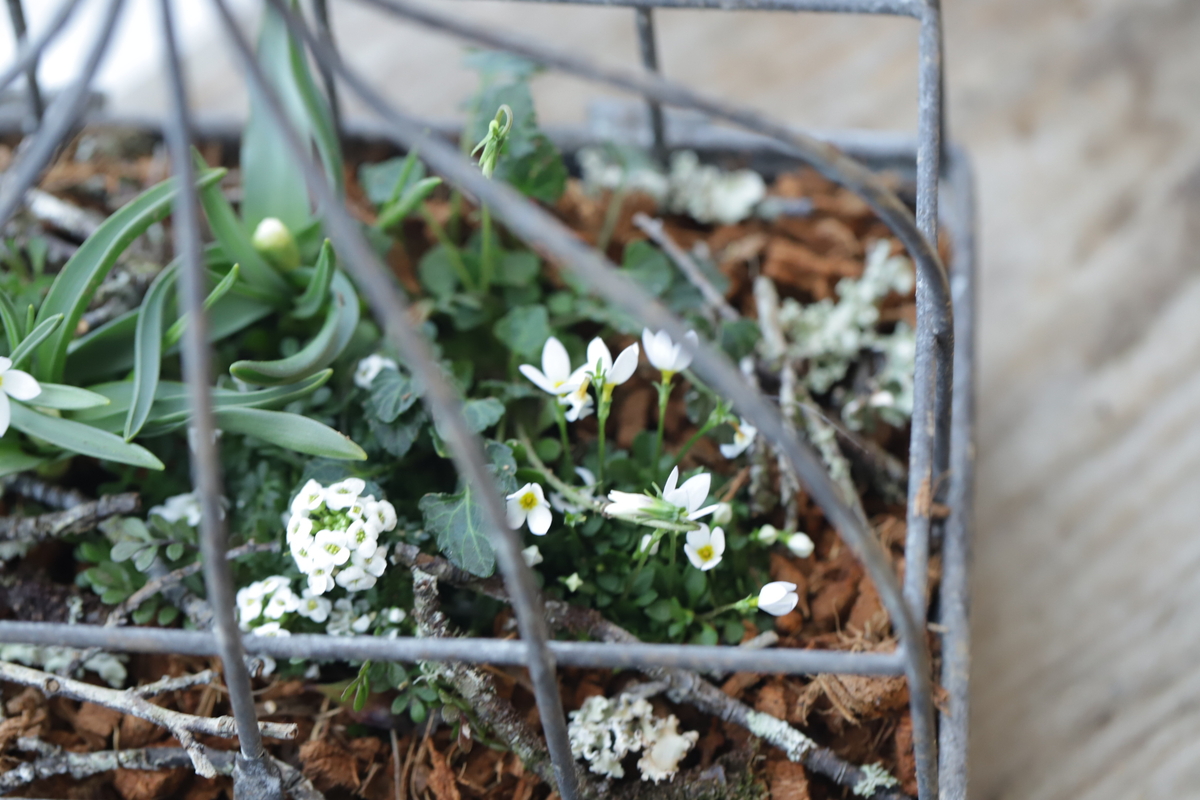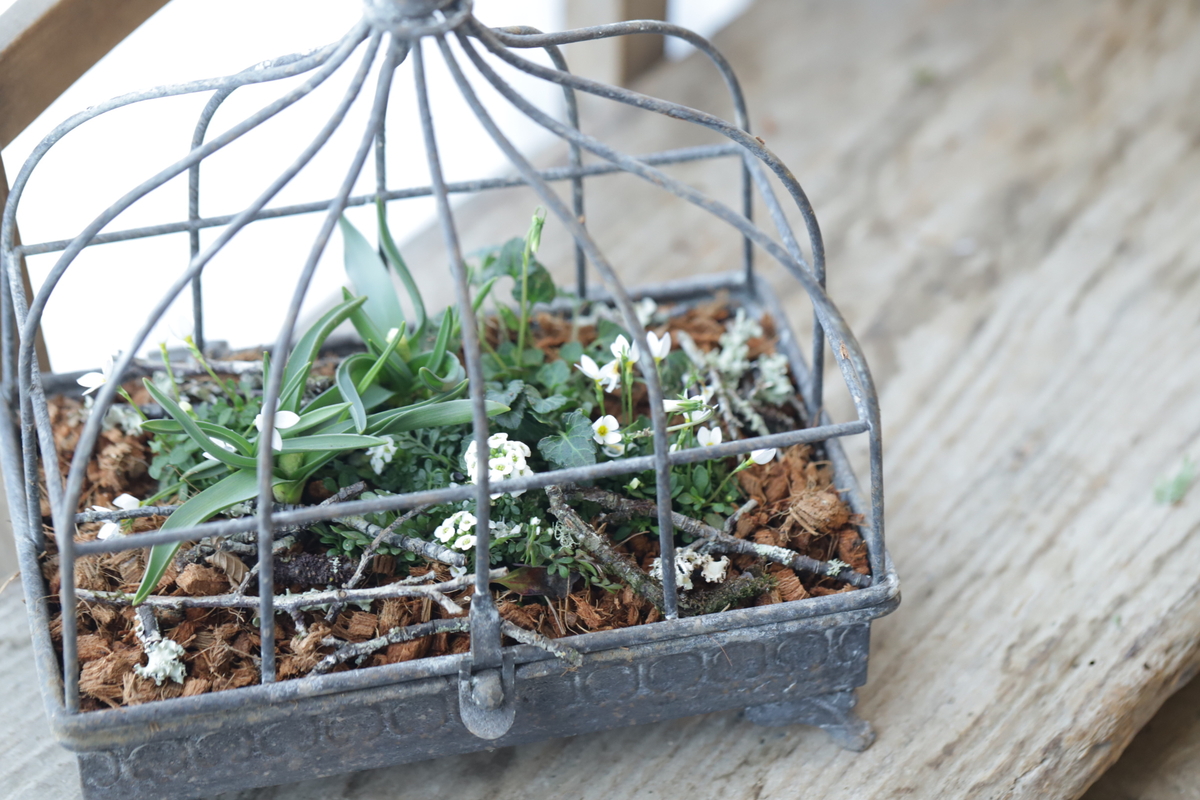 鉢の上に転がっている枝は森の中で小枝が落ちているイメージを