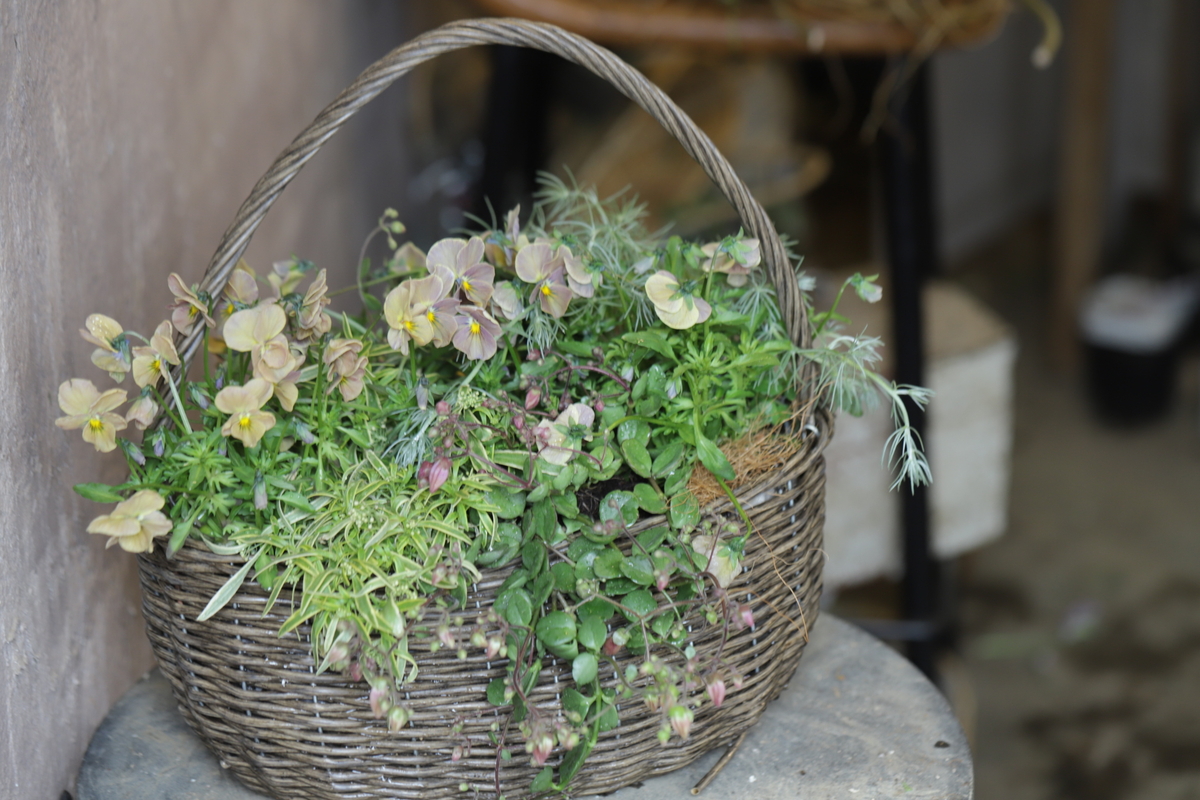 まだまだ楽しめるパンジーやビオラの寄せ植えは