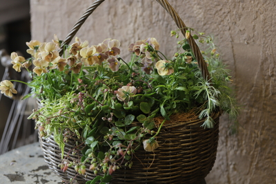 少し大きめの横長のバスケットに植え込みました