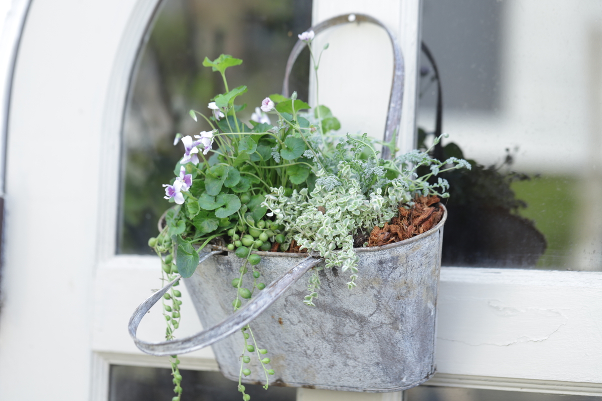 バック型のブリキの寄せ植え(壁掛けOK)