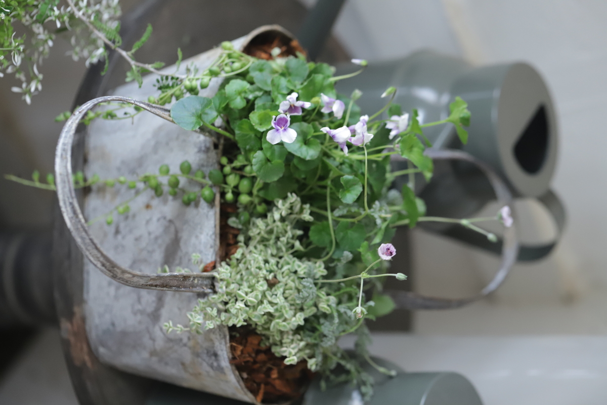 合わせたのはパンダスミレ、セダム、グリーンネックレス