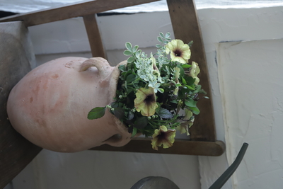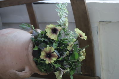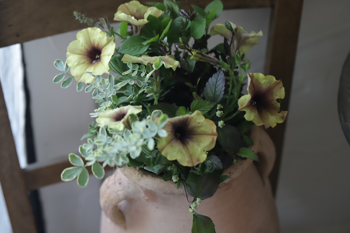 今はこじんまりしていますが、動きのある寄せ植えになっていきます