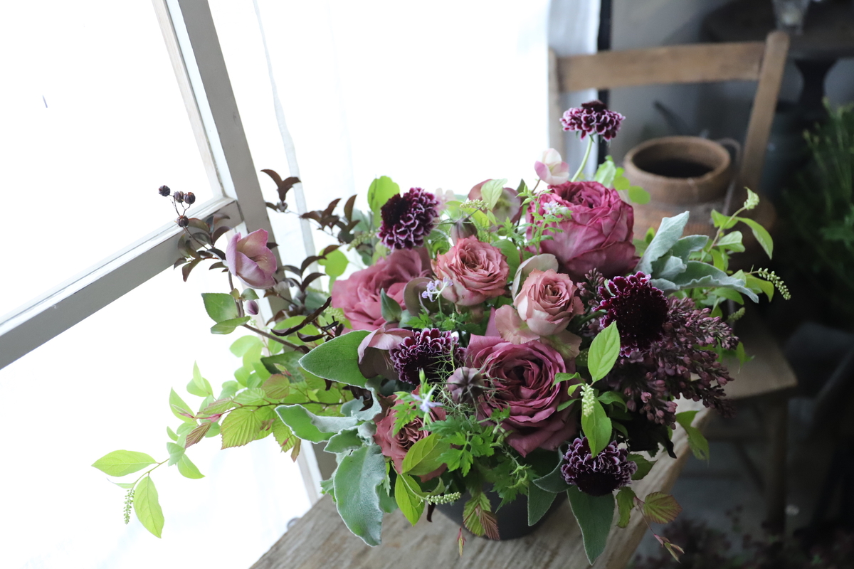 シックなピンクボルドーのアレンジメント