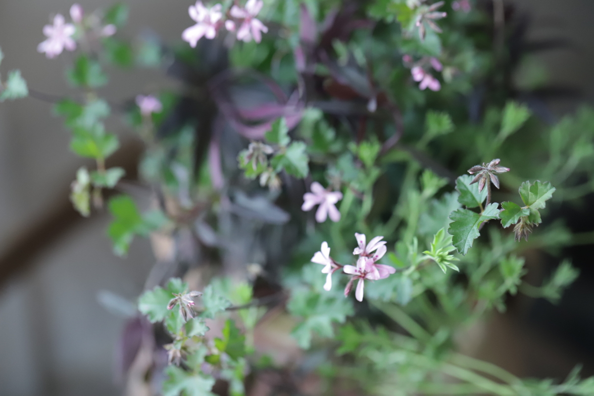 ぐんと大きく育ち花はくすんだピンクで萼も赤紫