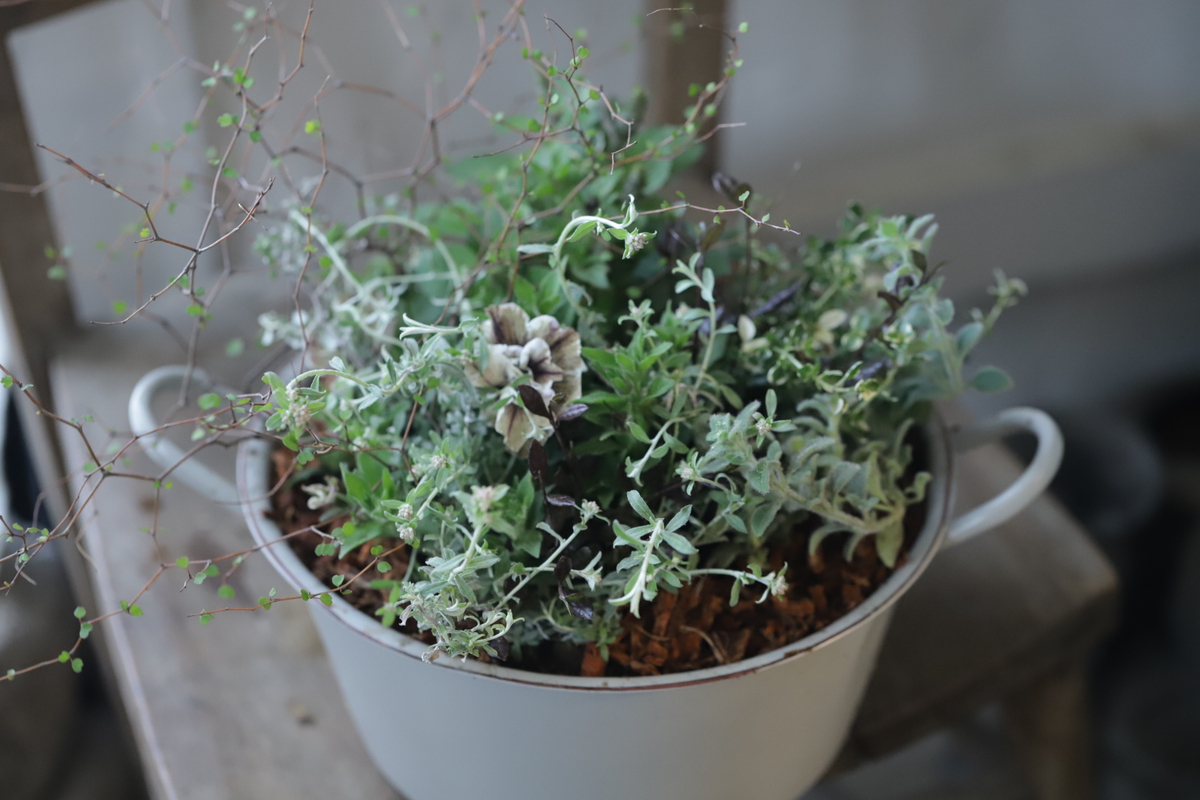 小花が咲くもの、葉物としても可愛いものを合わせています