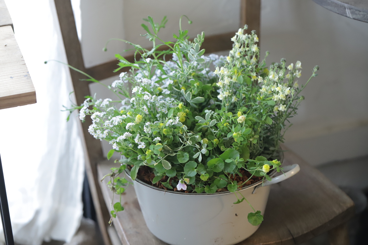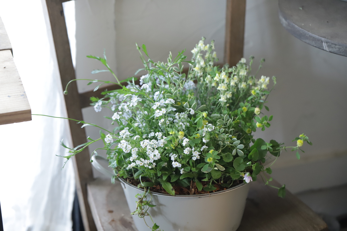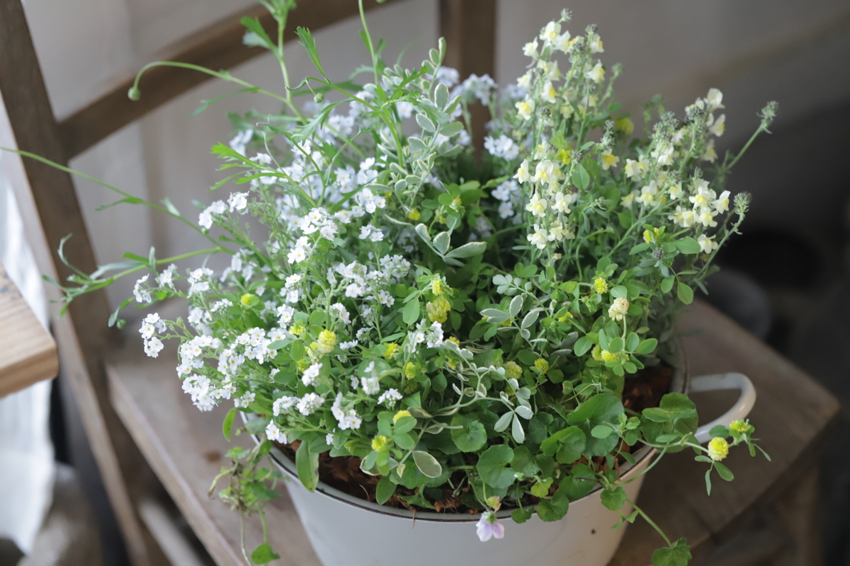 初夏の爽やかさも感じるナチュラルな小花の寄せ植えを作りました